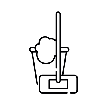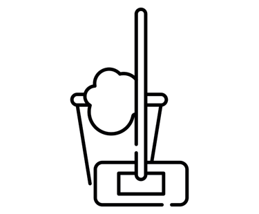 Equipamentos: Rodos, baldes e esfregões.